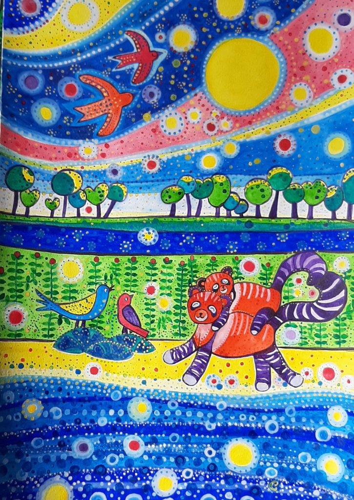 En voilà une interprétation assez personnelle, qui se rapproche aussi du panda roux 😅.