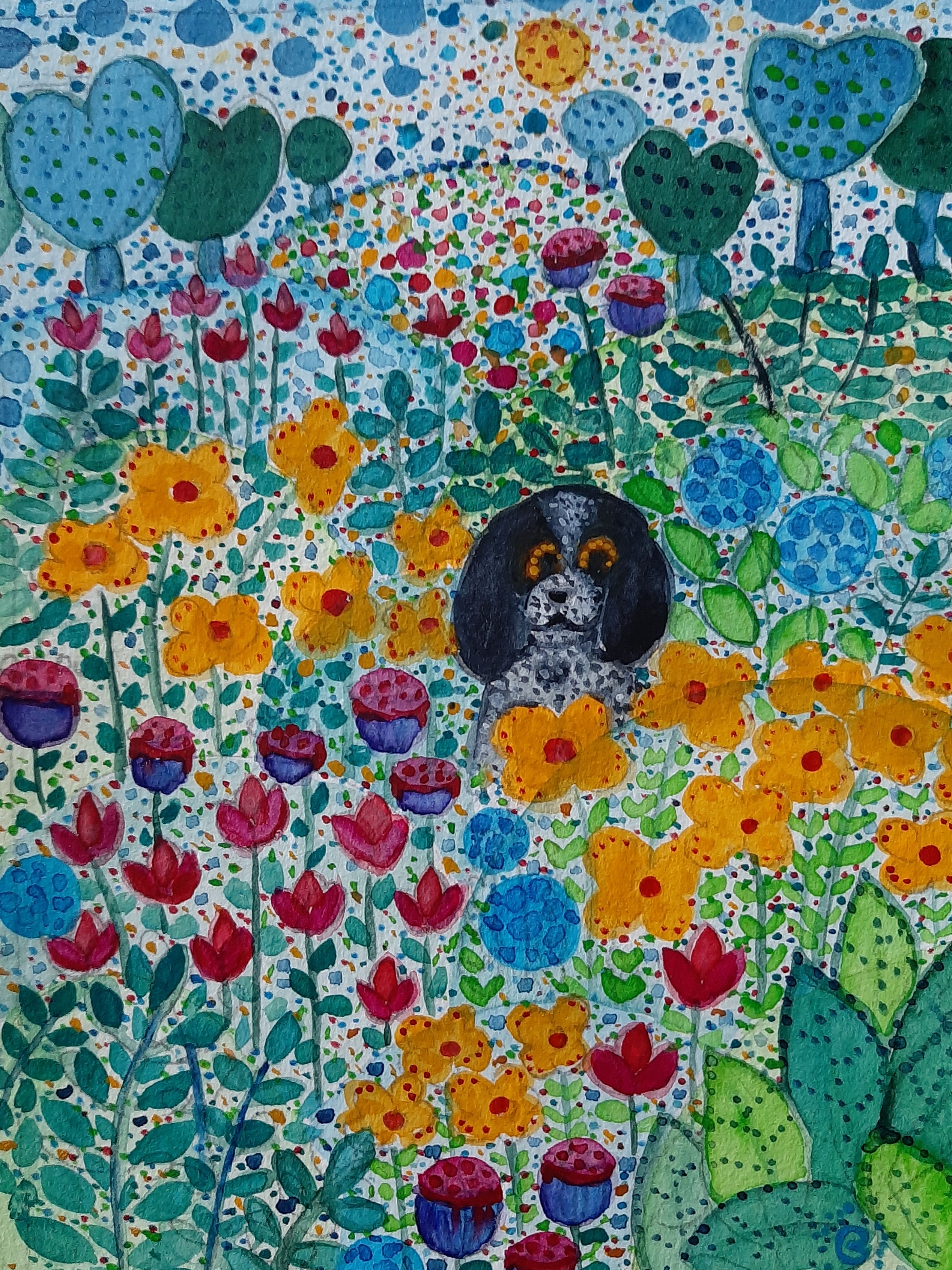 Une fois n’est pas coutume, j’ai peint un petit chien. C’est une commande pour une amie qui voulait avoir une aquarelle avec son animal de compagnie.